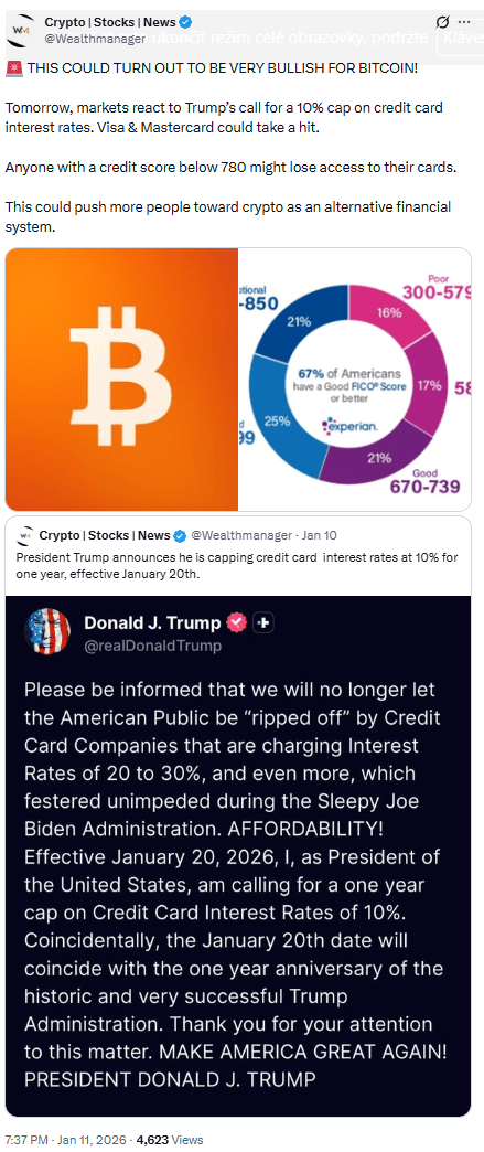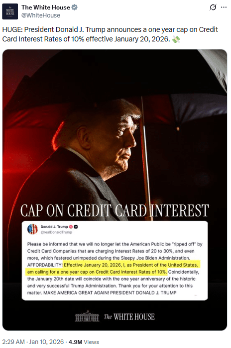 Ein möglicher Treiber ist der Vorschlag des ehemaligen Präsidenten Donald Trump, die Kreditkartenzinsen für ein Jahr ab dem 20. Januar 2026 auf 10 % zu begrenzen. Obwohl dieses Vorhaben darauf abzielt, finanziellen Druck für Millionen Amerikaner zu verringern, könnte die Politik den Zugang zu traditionellen Krediten für Personen mit einem Kreditwert unter 780 einschränken.