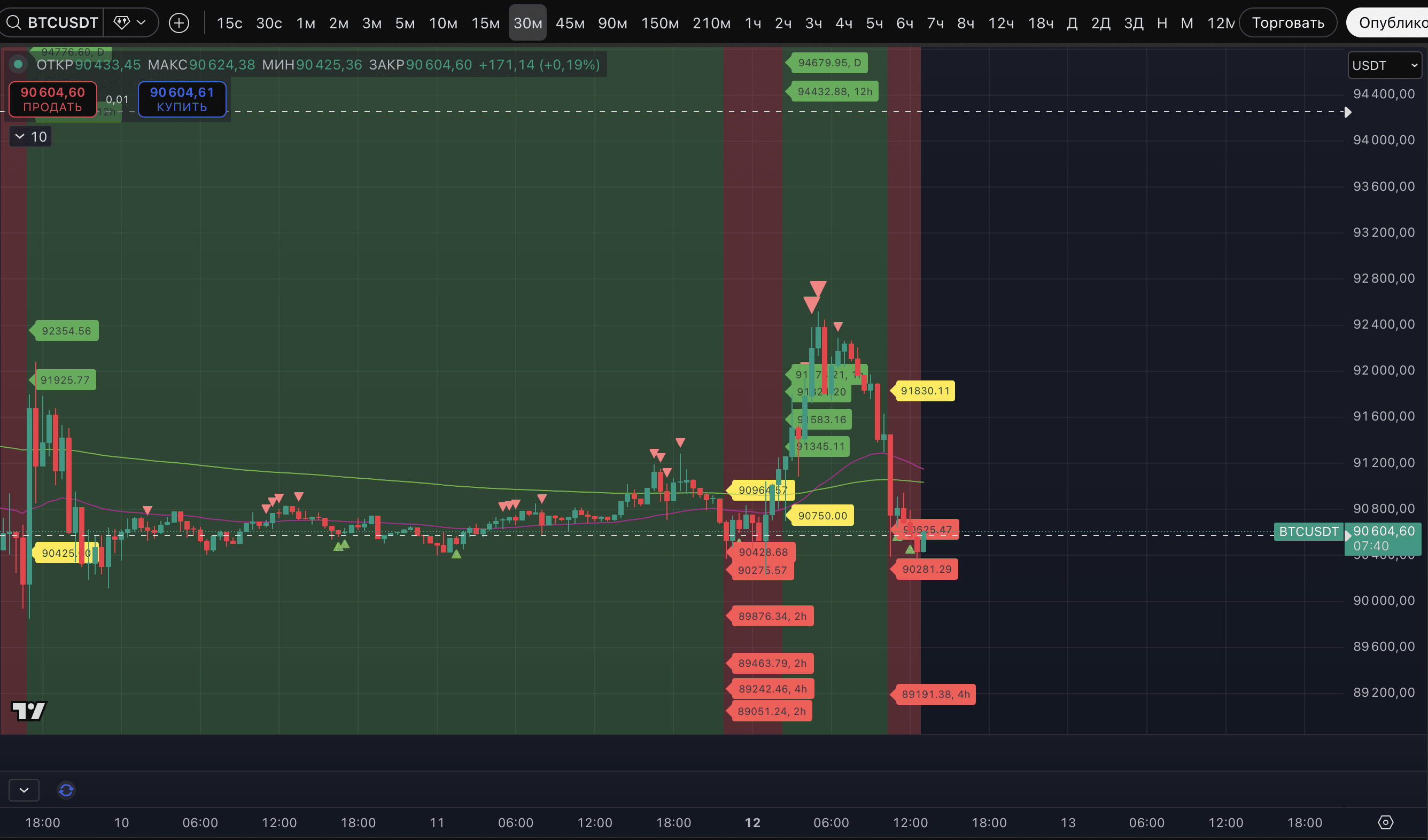 - geschrieben, dass das potenzielle Break-Level des Aufwärtstrends für #BTC bei 90.478 $ liegt und für #ETH bei 3.086 $. Wenn sich der Trend abrupt ändert, ist ein Rückgang bis zum potenziellen Break-Level sehr wahrscheinlich. Insgesamt fiel BTC bei der Korrektur auf 90.370 $ (obwohl die Kerze noch nicht unter 90.478 $ geschlossen hat), während ETH auf 3.101 $ sank. Somit wurde das potenzielle Break-Level für Ethereum bisher noch nicht getestet, und im Moment sieht es wieder besser aus als bei Bitcoin.