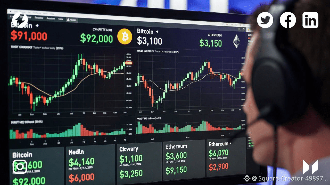 أما الإيثيريوم (ETH) فيُظهر أداءً أفضل قليلًا، حيث ارتفع بنحو ١٪ - ٢٪ ليصل إلى حوالي ٣,١٠٠ - ٣,١٥٠ دولار.