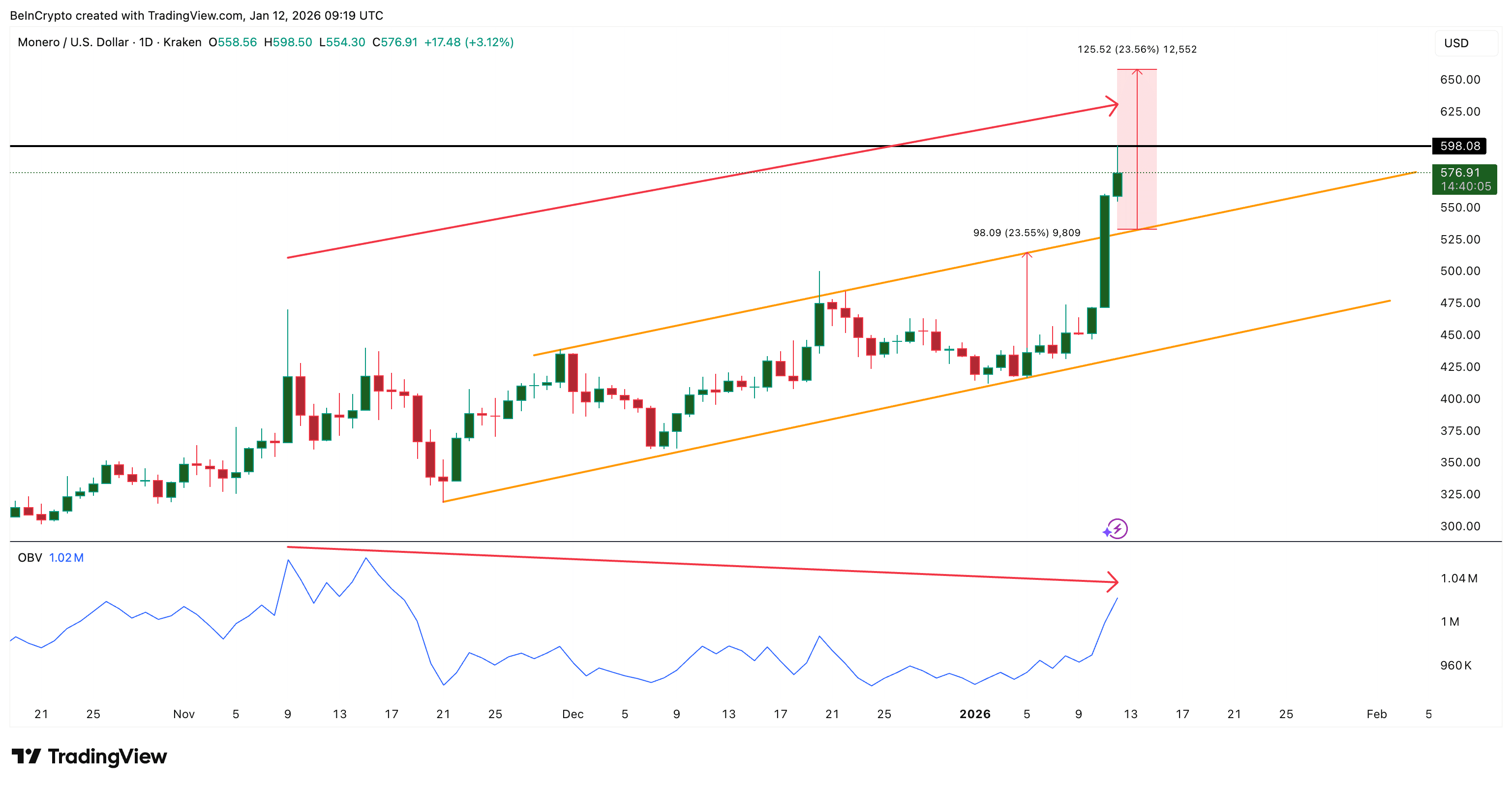 Monero entwickelt sich zu einem starken Kandidaten für einen neuen Allzeithoch, getrieben durch erneutes Interesse an privatsphäreorientierten Assets und einer Kapitalumverlagerung innerhalb des Sektors. In der vergangenen Woche hat $XMR h erhebliche Dynamik entwickelt und bereits in sein vorheriges Allzeithoch-Niveau um 598 $ vorgestoßen.