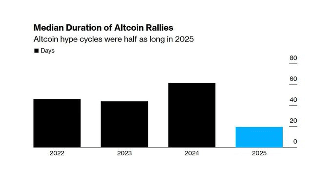 Laut Wintermute beträgt die Median-Dauer eines Alt-Rallys im Jahr 2025 etwa 20 Tage.