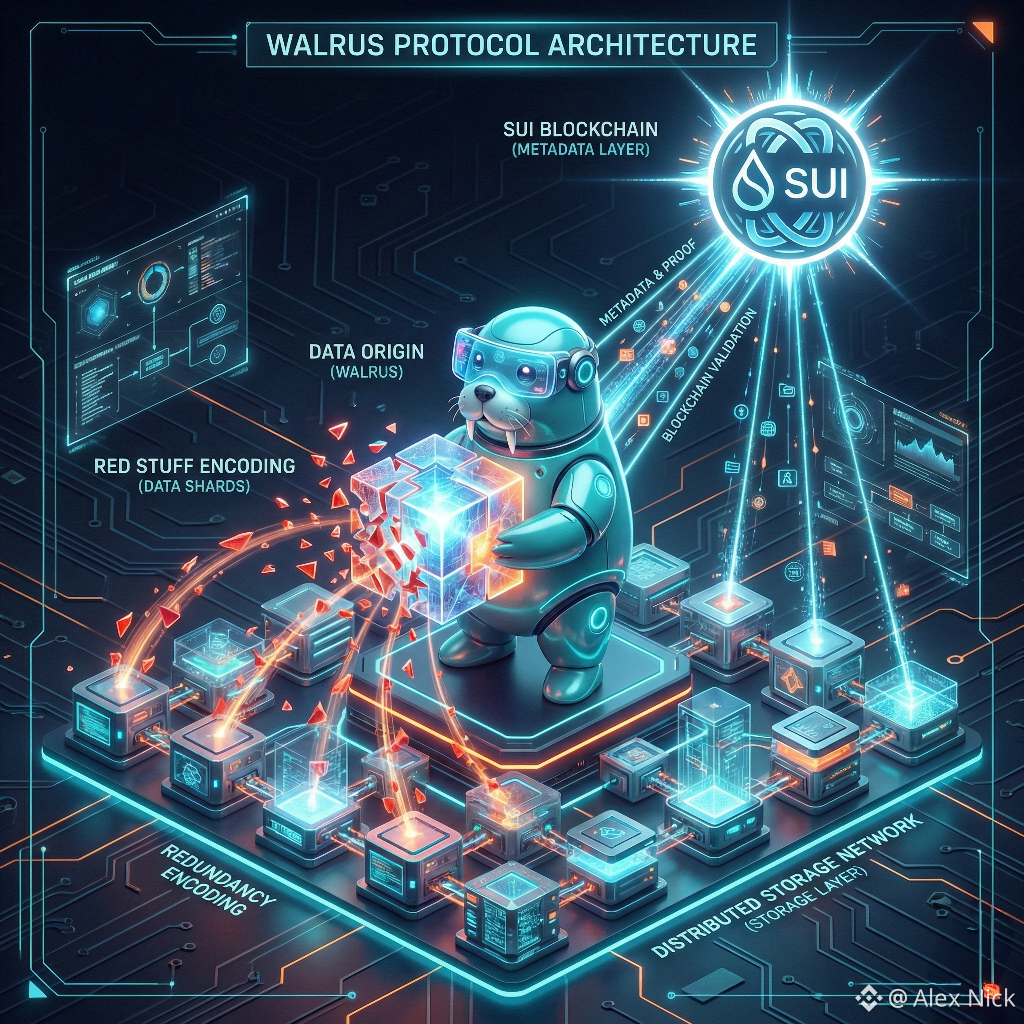 Walrus tries to address that gap from the ground up. Instead of treating storage as something optional, it treats it as the real backbone of digital systems. The project starts from a simple but important idea. If you do not control your data, then you do not control much of anything. So Walrus uses a method that breaks files into pieces, encrypts them, and spreads them around. No one can rebuild the original file without the protocol itself. I really like this approach because it moves responsibility away from trusting a single provider.