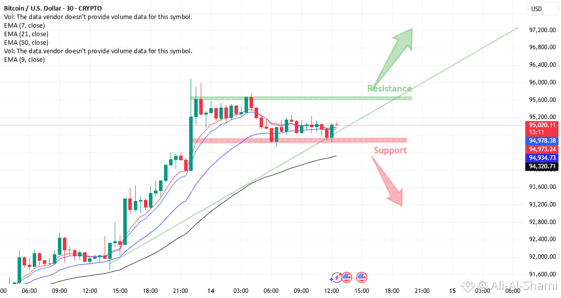 ✅ الدعم يُحافظ عليه قرب ~94,700–94,900