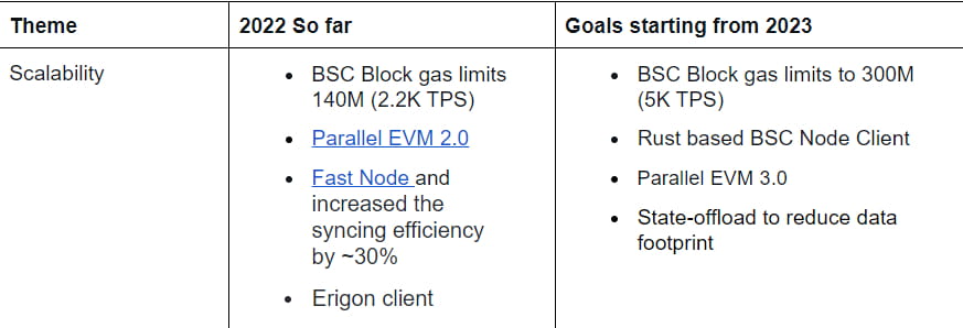 Für 2023 plant BNB eine Erhöhung des Gaslimits auf 300 Mio., wodurch sich die TPS auf 5.000 erhöhen wird.