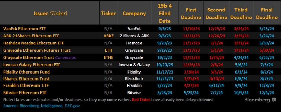 🔸Analysten erwarten, dass die SEC über die sogenannten 19b-4s entscheidet – vorgeschlagene Regeländerungen, die von Börsen im Namen der Emittenten eingereicht werden – bevor sie über die S-1-Registrierungserklärungen für jeden der geplanten Fonds abstimmt. Es könnte eine Verzögerung zwischen den beiden Maßnahmen geben, die beide erforderlich sind, damit die Produkte auf den Markt kommen.