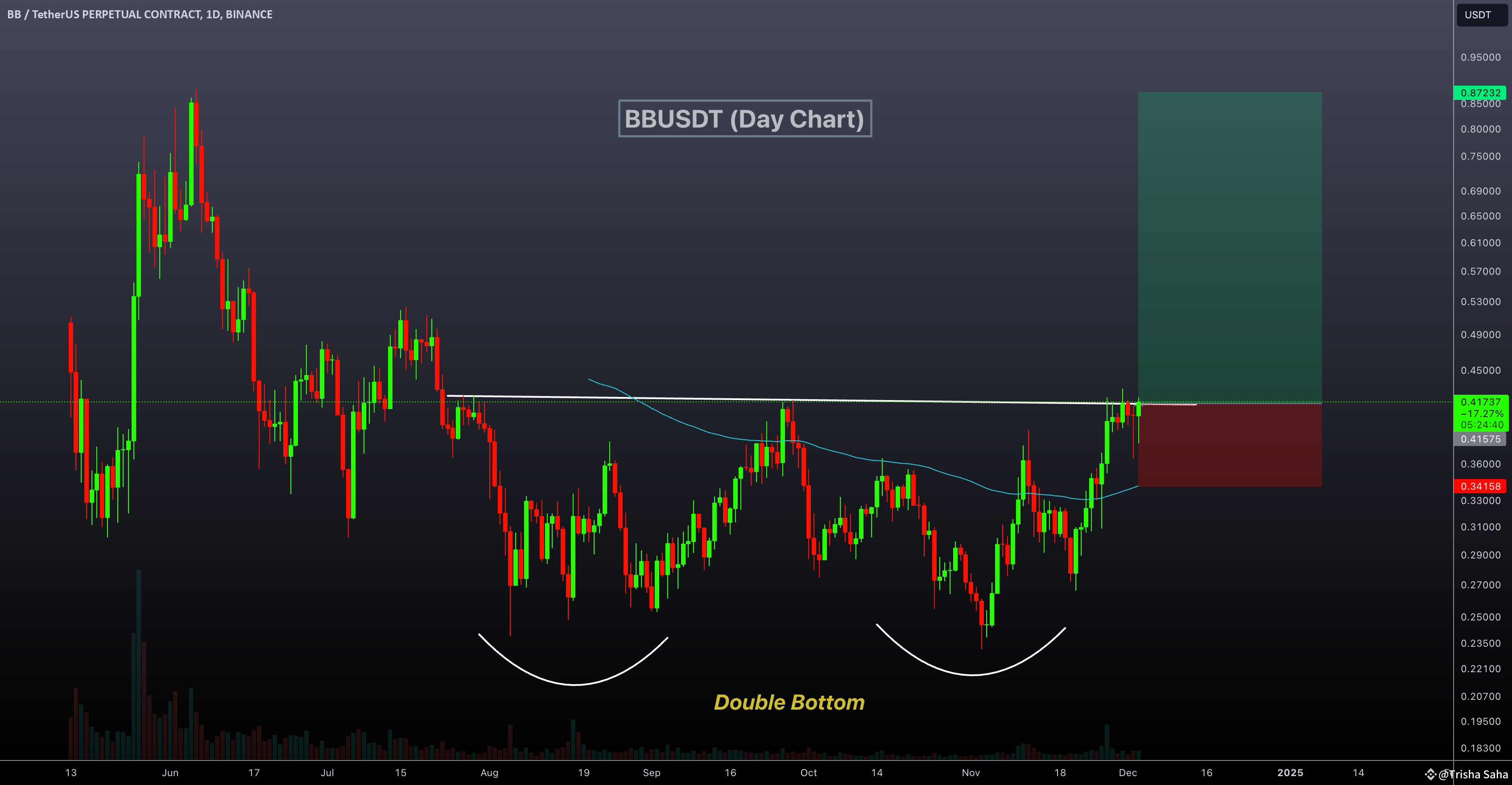 BBUSDT price has formed a double bottom pattern on the daily chart. The price has already moved up by 80% from the bottom and is now trading near the double bottom neckline resistance. Additionally, the price is trading above the 100 EMA on the daily chart. Once a breakout above the neckline is confirmed, a strong bullish move can be expected.