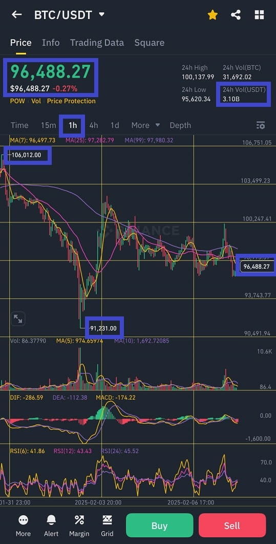 Bitcoin (BTC ) current price value $96,488