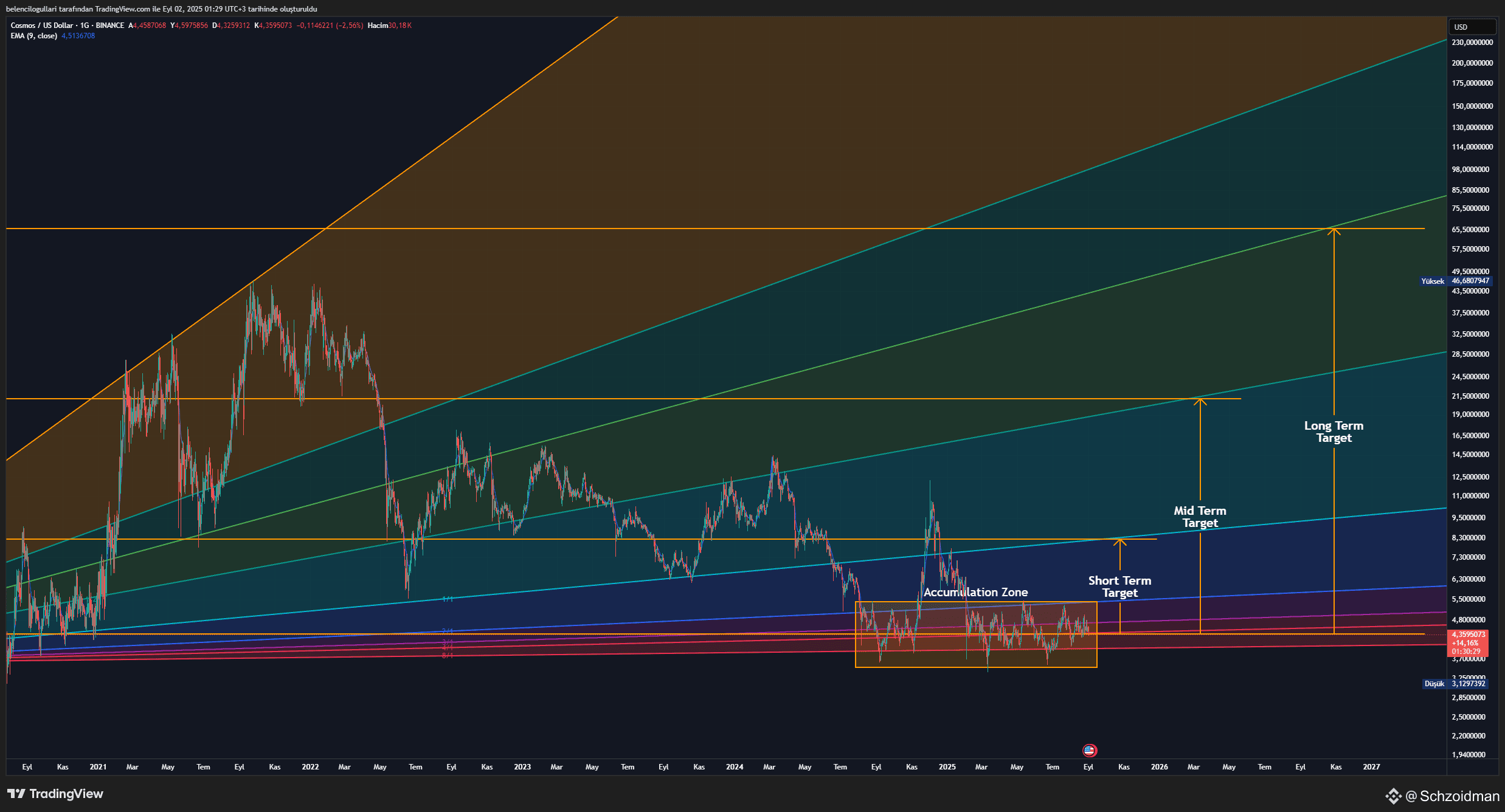 • 🟩 Accumulation Zone ($3.50–$5.40): Price has been ranging here for almost 10 months. The daily timeframe shows consistent accumulation behavior.