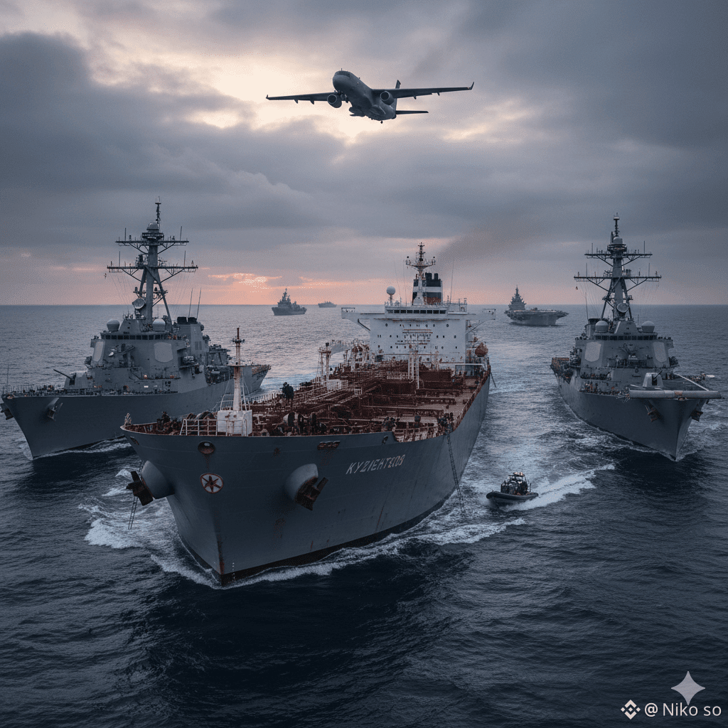 This is not symbolic enforcement. American naval forces pursued, boarded, and took control of ships suspected of violating U.S. sanctions â a step that places military power directly into what was previously an economic battlefield.$BTC
