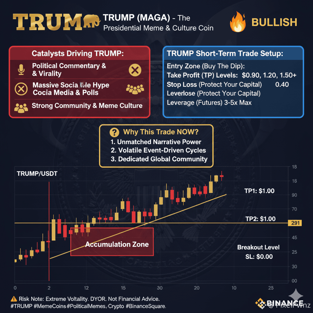 $TRUMP Coin doesn’t move like a normal crypto asset. It doesn’t rely on roadmaps, whitepapers, or developer updates. It moves on attention, controversy, and narrative momentum — and that alone makes it one of the most emotionally charged meme tokens in the market.