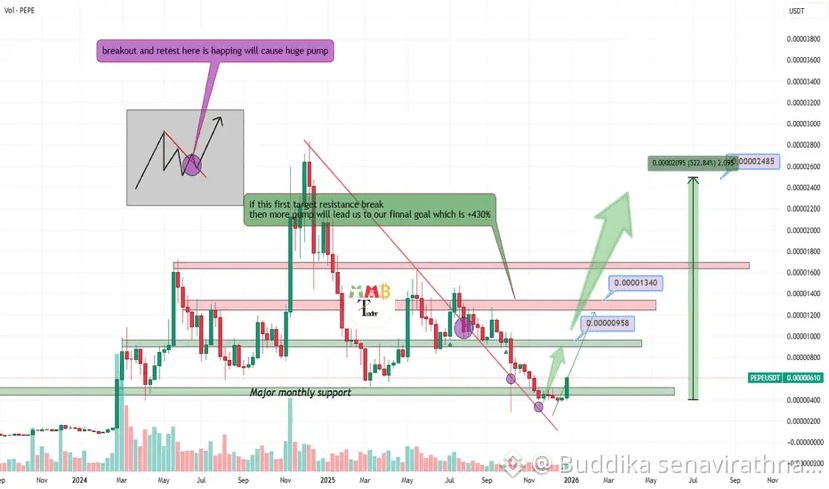 As observed, PEPE has initiated a bullish impulse from the $0.000004 level, already advancing approximately 50%. This movement may represent the early stage of a larger upward structure.