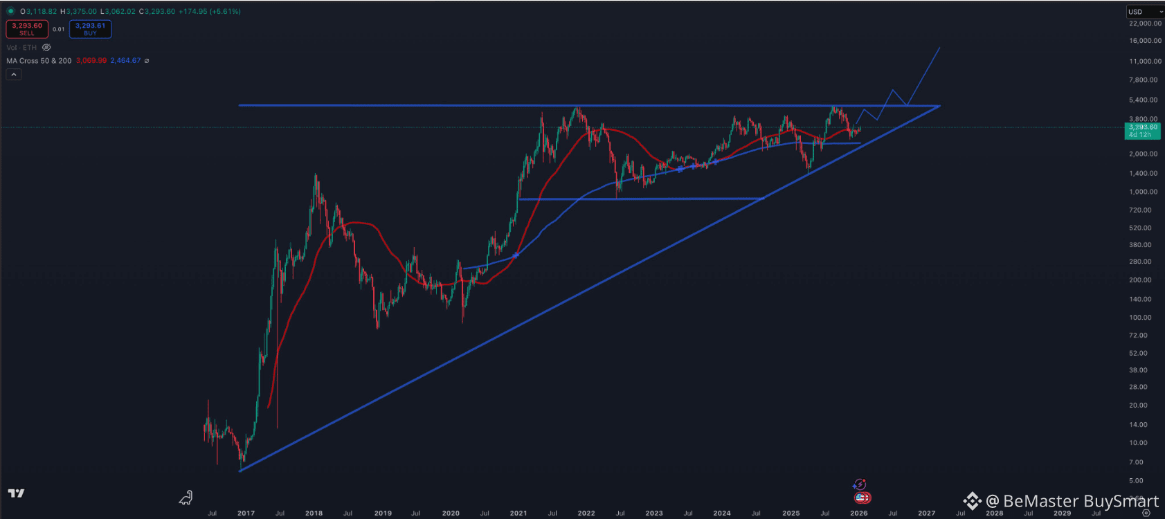 $ETH Ethereum trades above critical 50 and 200 weekly moving averages at $3,200-$3,300, signaling continued bullish momentum and potential test of previous all-time highs.