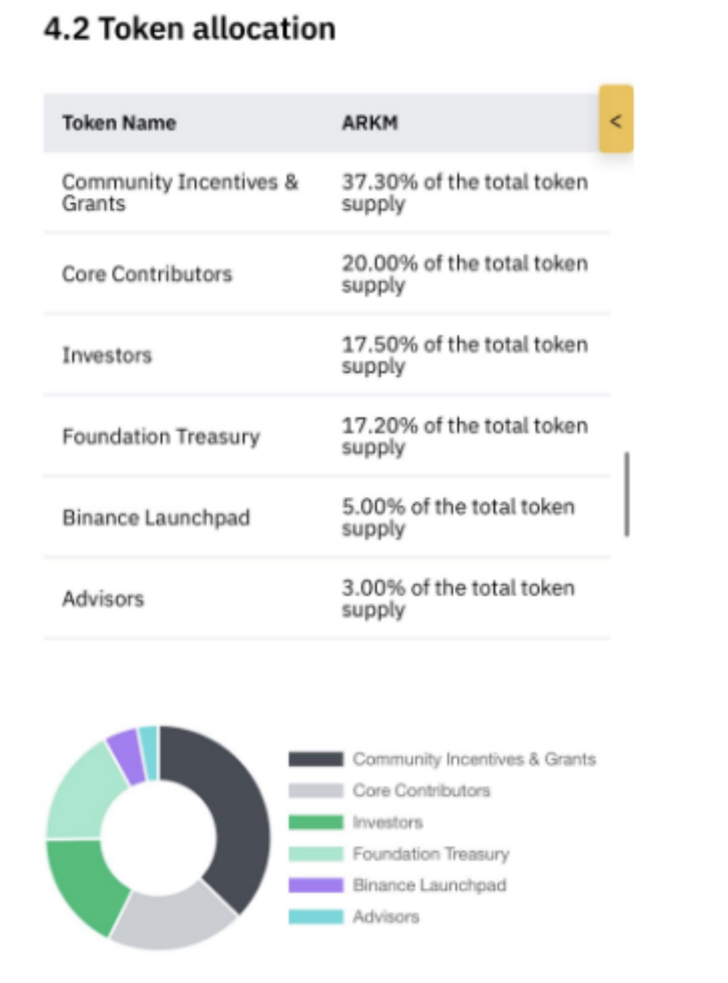 4. Token distribution model According to Binance Research data, the initial distribution of ARKM is as follows: