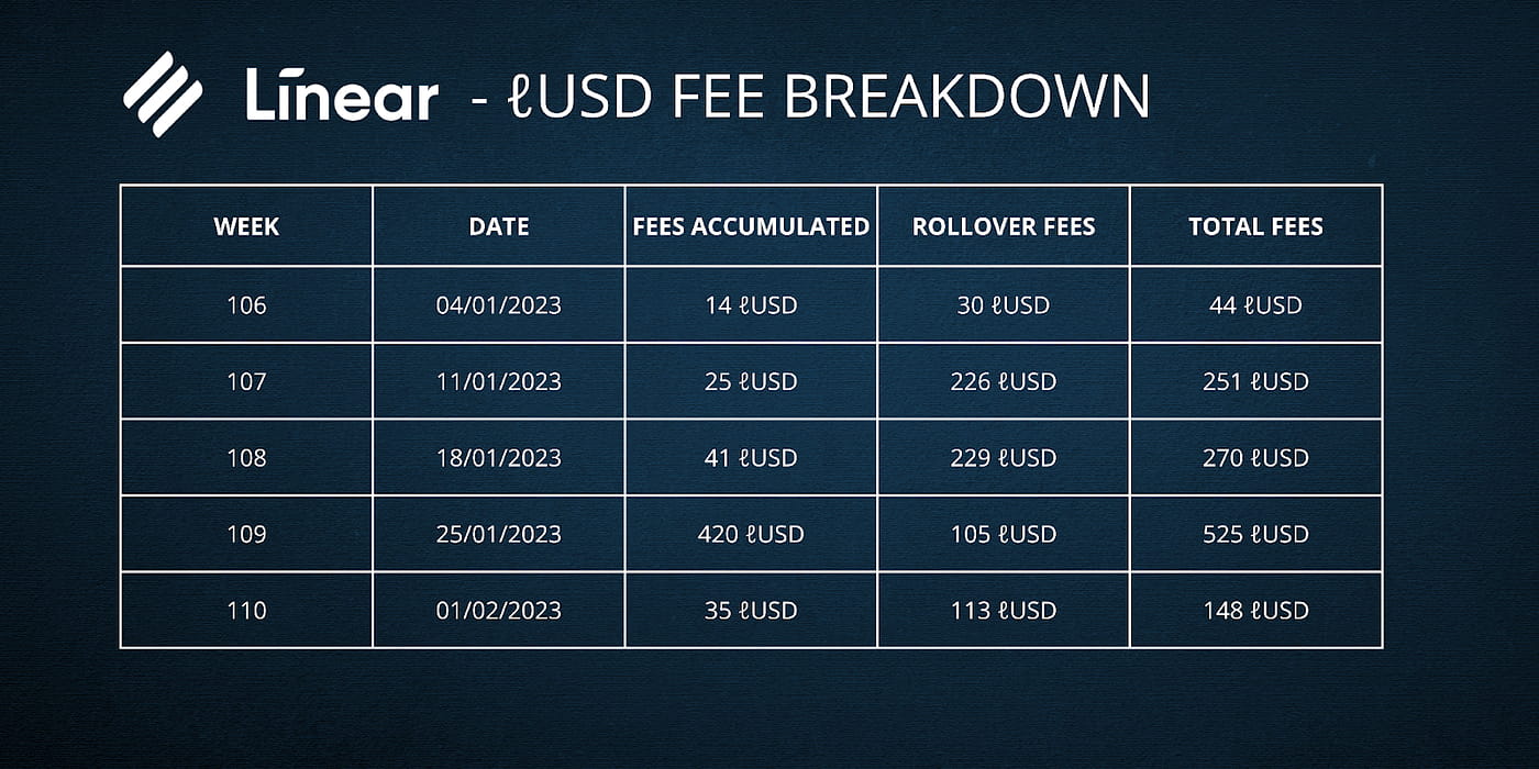 Los stakers también ganan ℓUSD de las tarifas de trading en Linear Exchange. La tarifa de trading es del 0.25%, de la cual el 70% va a los stakers y el 30% va a la Fundación.