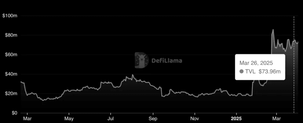 En solo unos meses, la liquidez pasó de $0 a más de $70 millones, incluso en medio de la turbulencia del mercado más amplio (datos de DeFiLlama).
