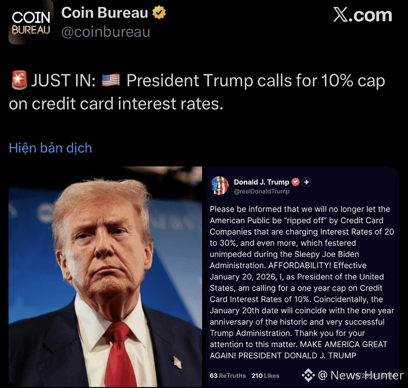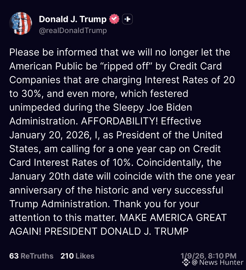 El presidente Trump ahora exige un tope del 10% en todas las tasas de interés de tarjetas de crédito, un golpe directo a los bancos que han estado cobrando entre el 20-30%+ como si fuera dinero gratis.
