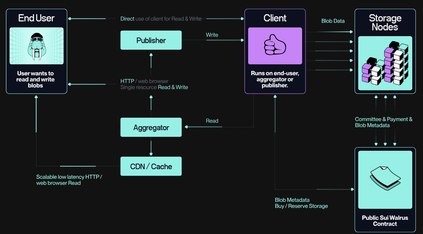 Finalmente, el estaking de datos y los resultados de las pruebas se coordinan en Sui mediante contratos inteligentes, lo que da a Walrus una traza transparente en cadena de quién estacó qué, quién almacenó qué blobs y cómo se desempeñaron los nodos con el tiempo.