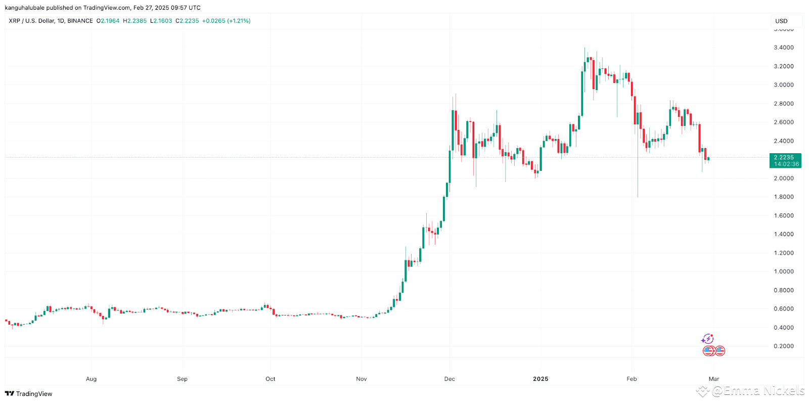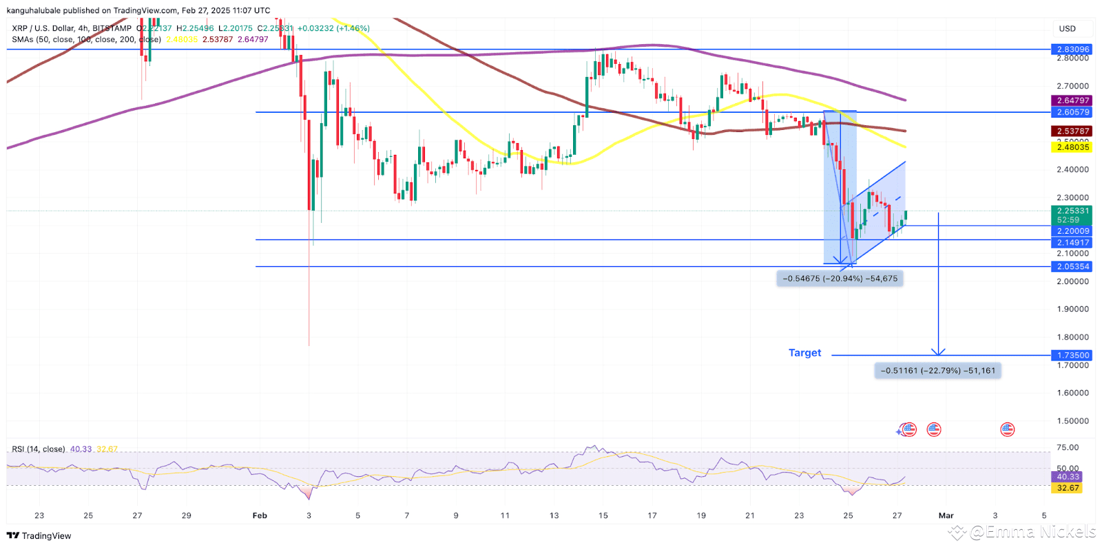 đ» The bear flag formed after XRPâs sharp drop from $2.60 to $2.06 between Feb. 24 - Feb. 25.