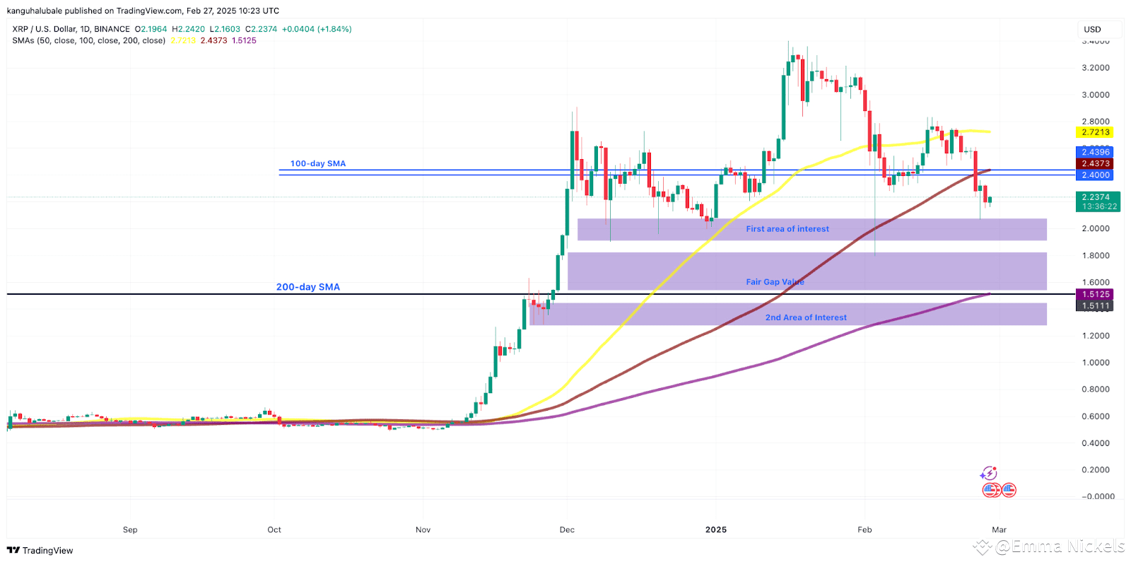 đ $2.15 â A crucial level that, if lost, could send XRP to $2.06.