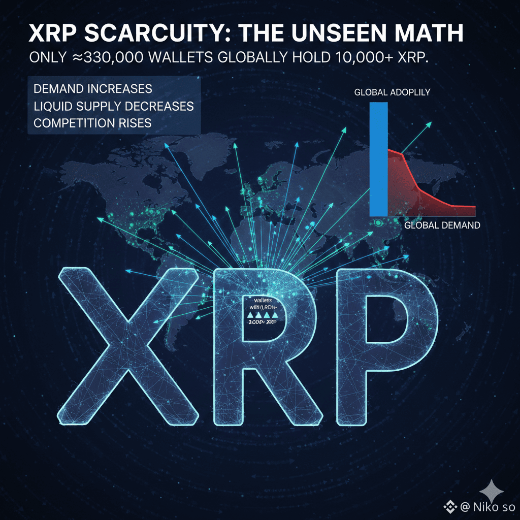 According to on-chain data, only around 330,000 wallets globally hold 10,000 XRP or more. That’s not a guess or a theory — it’s a measurable blockchain statistic.