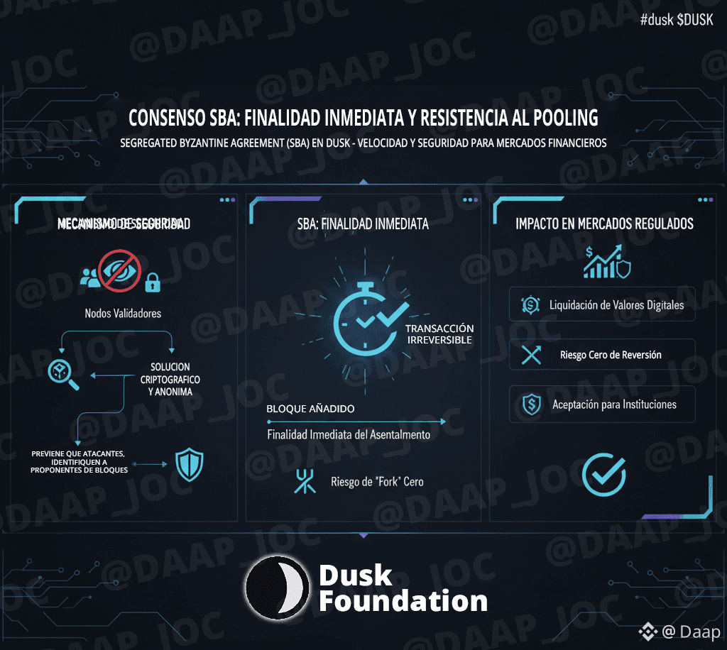 En mercados financieros, la "probabilidad de finalidad" de Bitcoin (esperar 6 bloques) es inaceptable. @Dusk utiliza el consenso SBA, que combina Proof-of-Stake con una selección aleatoria de nodos mediante sortition criptográfica.