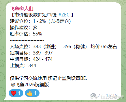 老朋友 #ZEC 刚刚反弹到399.6 完成TP2。现在同样设置保本。这波涨幅10.6% 吃吃吃!!! $ZEC