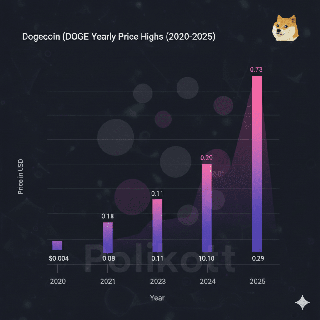 📈 2020: Awal yang Sederhana ✨ Pada tahun 2020, Dogecoin diperdagangkan pada harga kecil sekitar $0,004. Ini sebagian besar merupakan mata uang "tip" yang menyenangkan untuk internet, tetapi fondasi untuk sesuatu yang besar sedang dibangun.