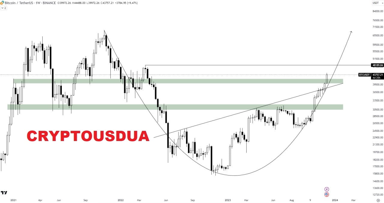 Analisi: Bitcoin sta mostrando un impressionante movimento parabolico, superando livelli di resistenza orizzontale precedentemente segnati.