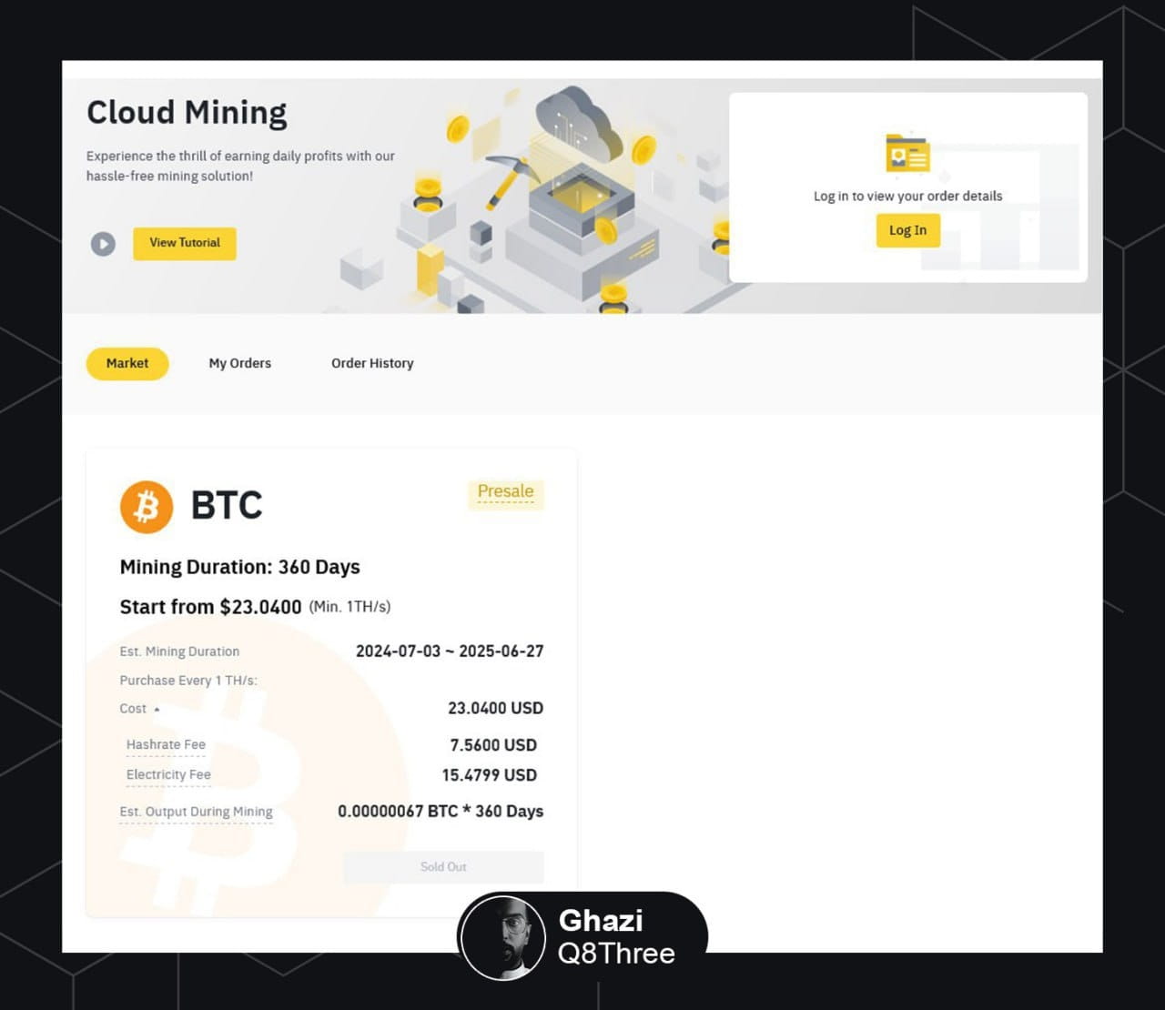 Il servizio di cloud mining è disponibile su Binance Cloud Mining.