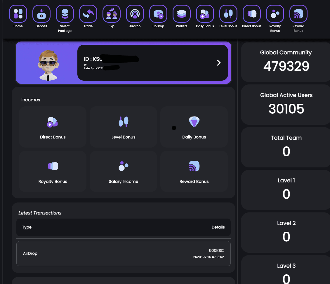 Sembra che il sistema si basi sull'acquisizione/presentazione di nuovi membri e sul continuo rifornimento del proprio account.