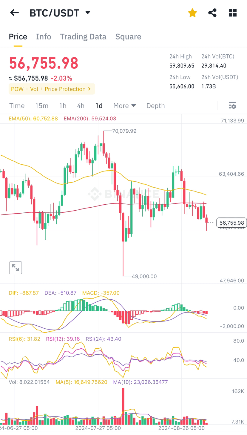 A partire dal 4 settembre 2024, $BTC ha affrontato un inizio di mese difficile, con il suo prezzo sceso sotto la soglia dei $ 58.000, continuando la tendenza al ribasso osservata a fine agosto. Questo calo, attualmente intorno ai $ 57.273, ha posizionato il mercato in una fase critica mentre ci dirigiamo più a fondo in un mese storicamente difficile per $BTC