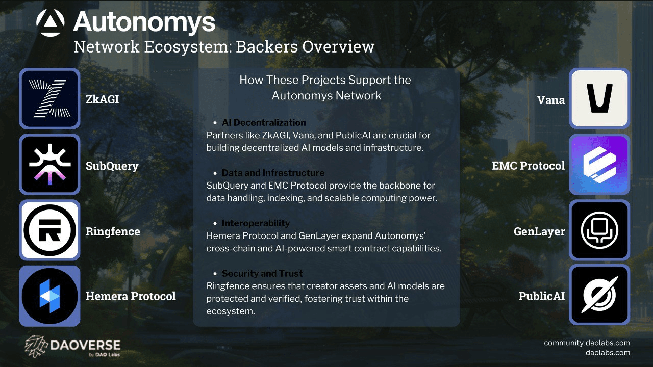 La Rete Autonomys è il secondo progetto che @DAO Labs #SocialMining supporta con un ILO. In questo articolo, possiamo vedere alcuni dei partner chiave e dei progetti che supportano la Rete #Autonomys. Ecco una rapida panoramica di ciascuno, i loro ruoli e come contribuiscono all'ecosistema: