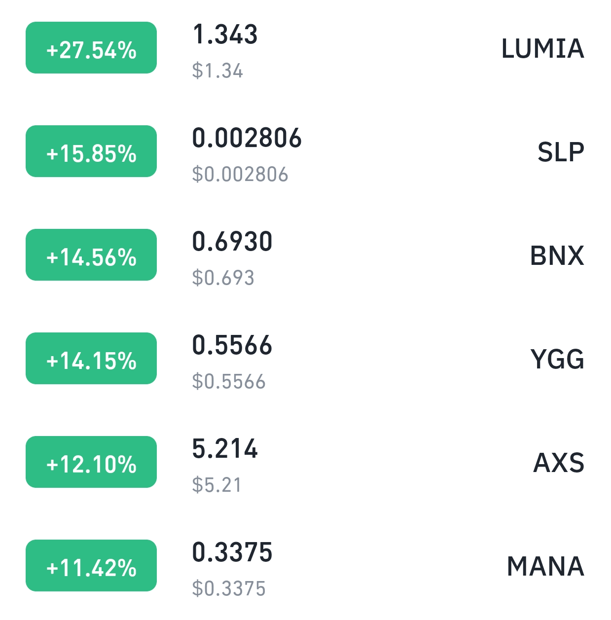 🔥 6. MANA 🔝 +11,42% 🔥