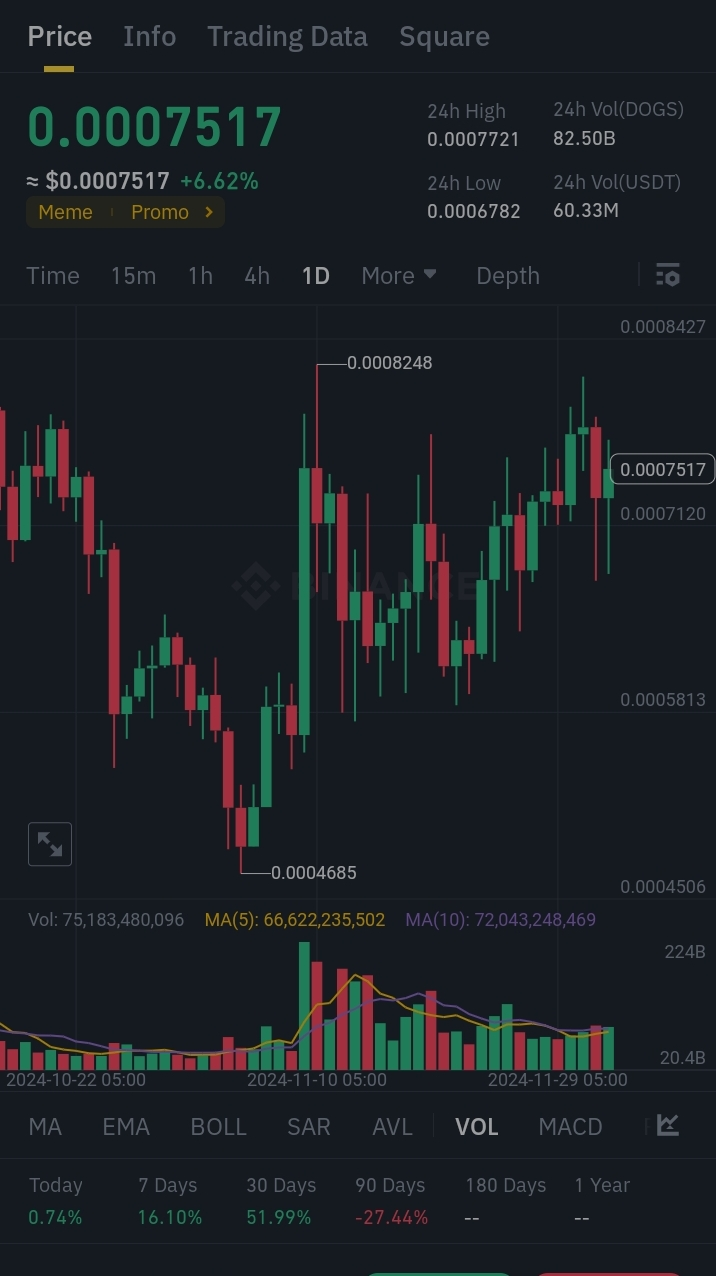 Il Dogs Token (DOGS) sta attualmente scambiando a $0.0007517, rendendolo un asset attraente e accessibile nel mercato delle criptovalute. Questo articolo fornisce un'analisi concisa dei livelli chiave di DOGS e offre intuizioni strategiche per i trader che cercano di capitalizzare il suo potenziale.