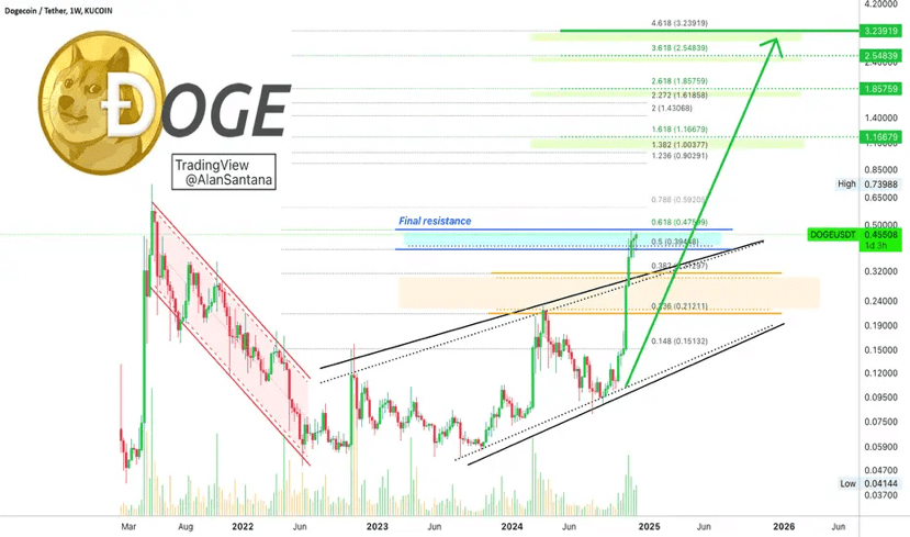 Dogecoin sta affrontando la resistenza finale a 0,47 dollari.