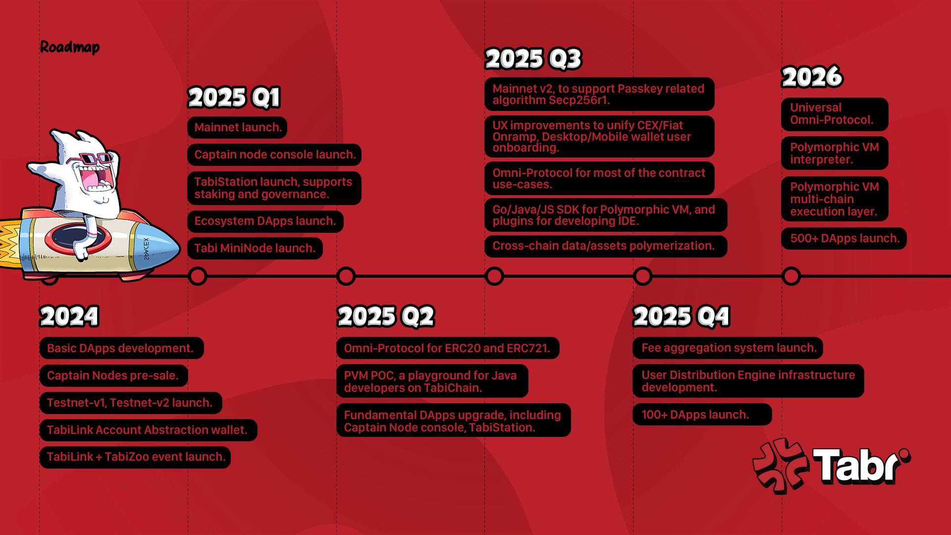 Il rebranding segna un passo fondamentale per Tabi, introducendo un rinnovato focus su accessibilità, comunità e innovazione. "Tabi Reborn" riflette l'evoluzione del progetto in una catena consumer visionaria che integra Poly-App e ridefinisce le interazioni Web3. Simboleggia l'energia e la determinazione necessarie per guidare il progresso.