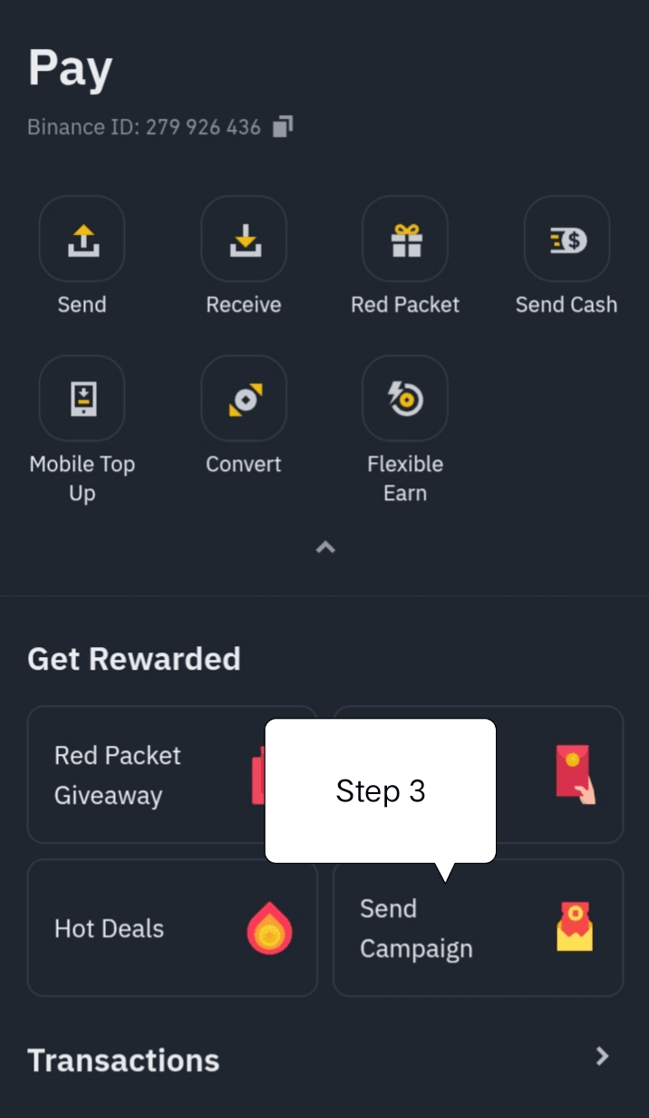 Passo 5 : Il passaggio successivo è inserire l'ID Binance del tuo amico. Puoi anche inserire l'ID Binance fornito nell'immagine qui sotto.