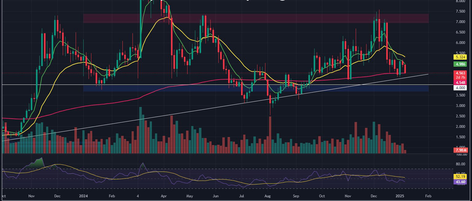 🔹 Stop Loss: Chiusura giornaliera sotto $4