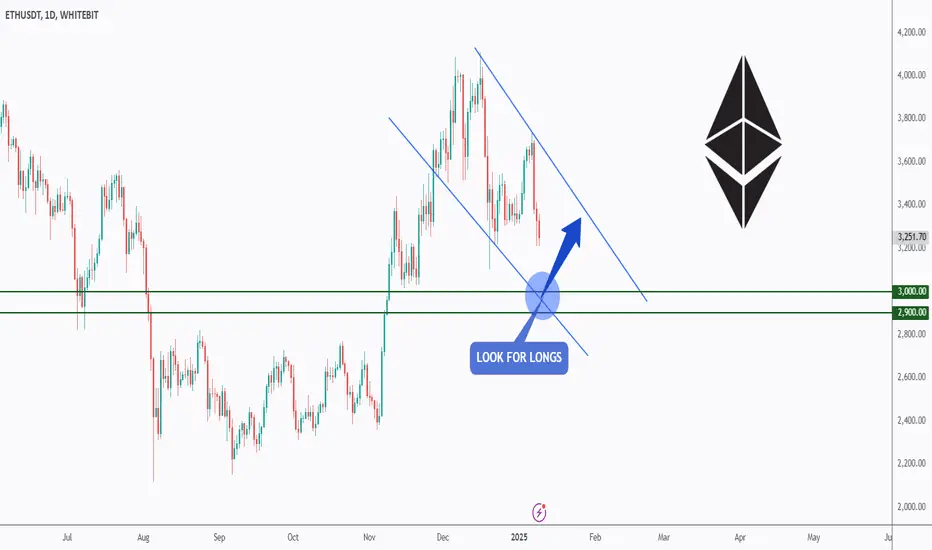 $ETH ha mostrato un trend complessivamente ribassista all'interno del wedge in caduta contrassegnato in blu. Attualmente, si sta avvicinando al limite inferiore del wedge.