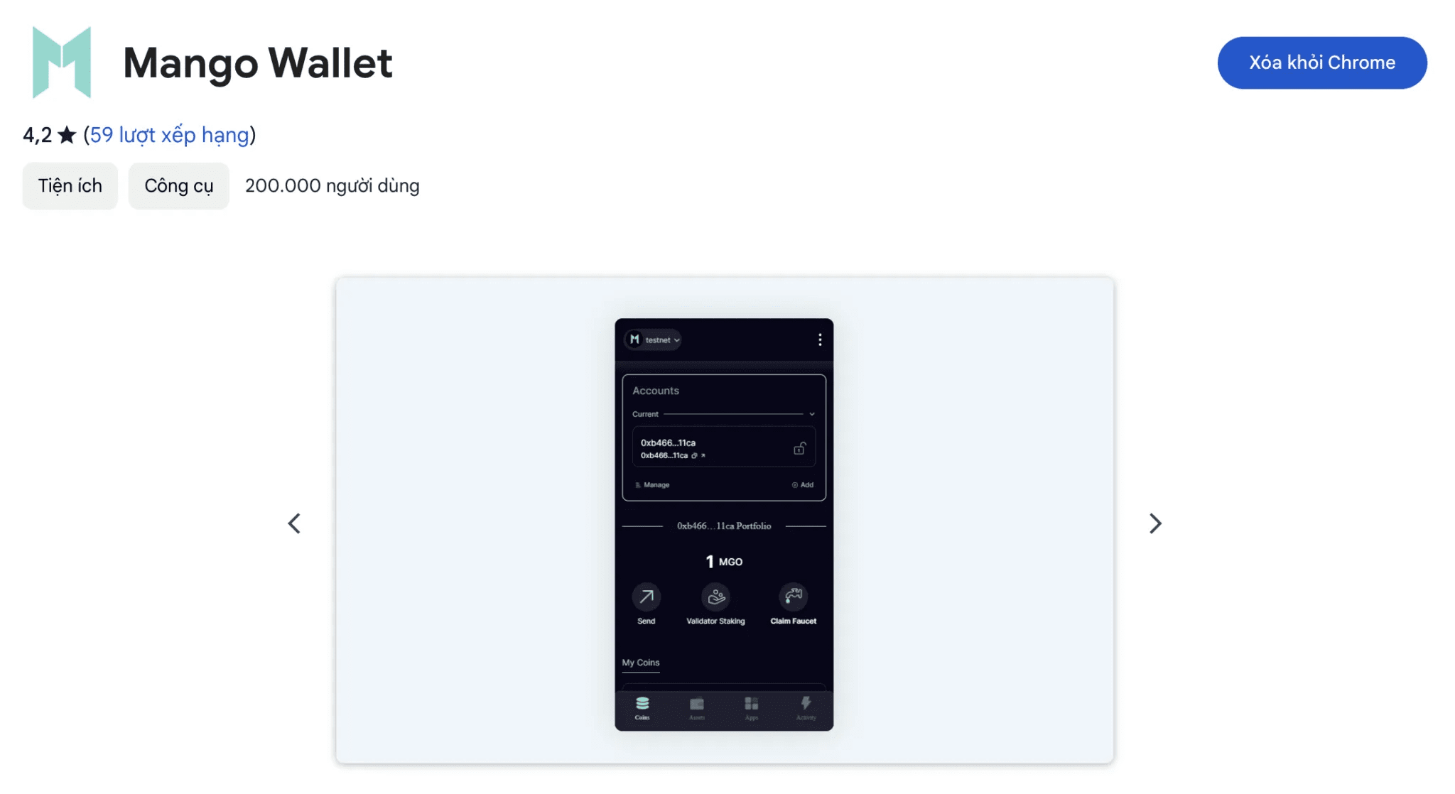 @mgo-faucet + il tuo indirizzo del wallet Mango per richiedere token MGO.