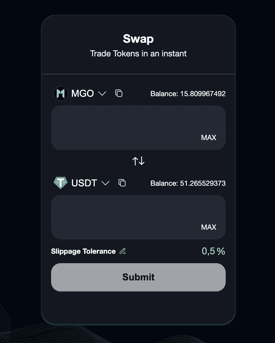 Scambia token MGO con USDT.