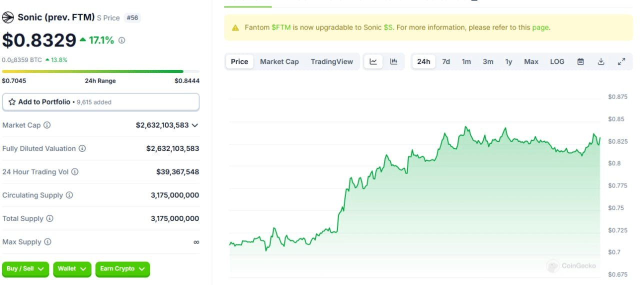 โข #SONIC Il rebranding di #FANTOM. sta alimentando l'eccitazione, portando il suo prezzo a salire dell'11% in 24 ore.