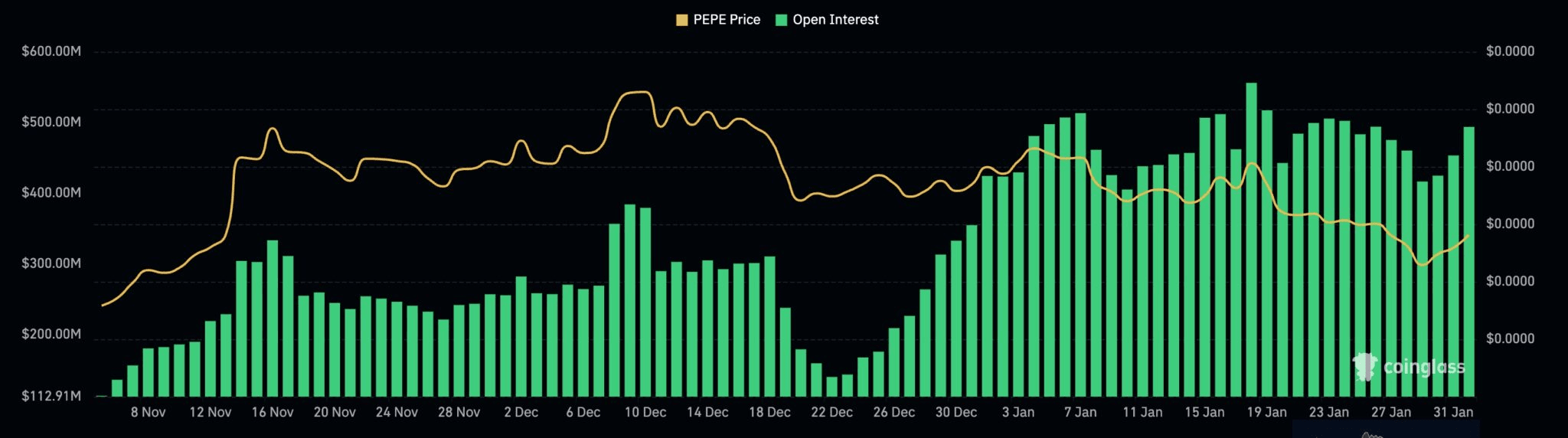 📊 L'interesse aperto nei futures di Pepe rimane stabile nonostante il calo del prezzo – un possibile segnale di un imminente movimento al rialzo.