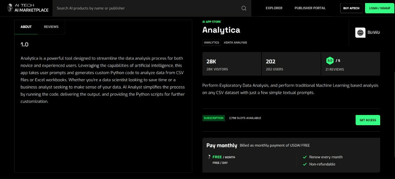 AnalyticaBizWiz è una piattaforma di analisi avanzata guidata dall'IA che aiuta le aziende a prendere decisioni basate sui dati fornendo approfondimenti dettagliati sulle operazioni e sulle tendenze di mercato.