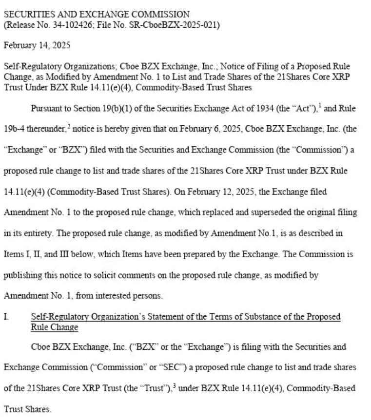 → Inoltre, il 12 febbraio, sia Foresight News di Binance che Cointelegraph hanno riportato che la Securities and Exchange Commission (SEC) degli Stati Uniti si aspetta di dare il via libera alla domanda di ETF XRP 19b-4 di Grayscale entro il 13 febbraio. Entro il 14 febbraio, la SEC ha confermato la ricezione della domanda di ETF XRP! Questo potrebbe segnare un passo significativo in avanti nella ricerca dell'approvazione dell'ETF!🙏👍