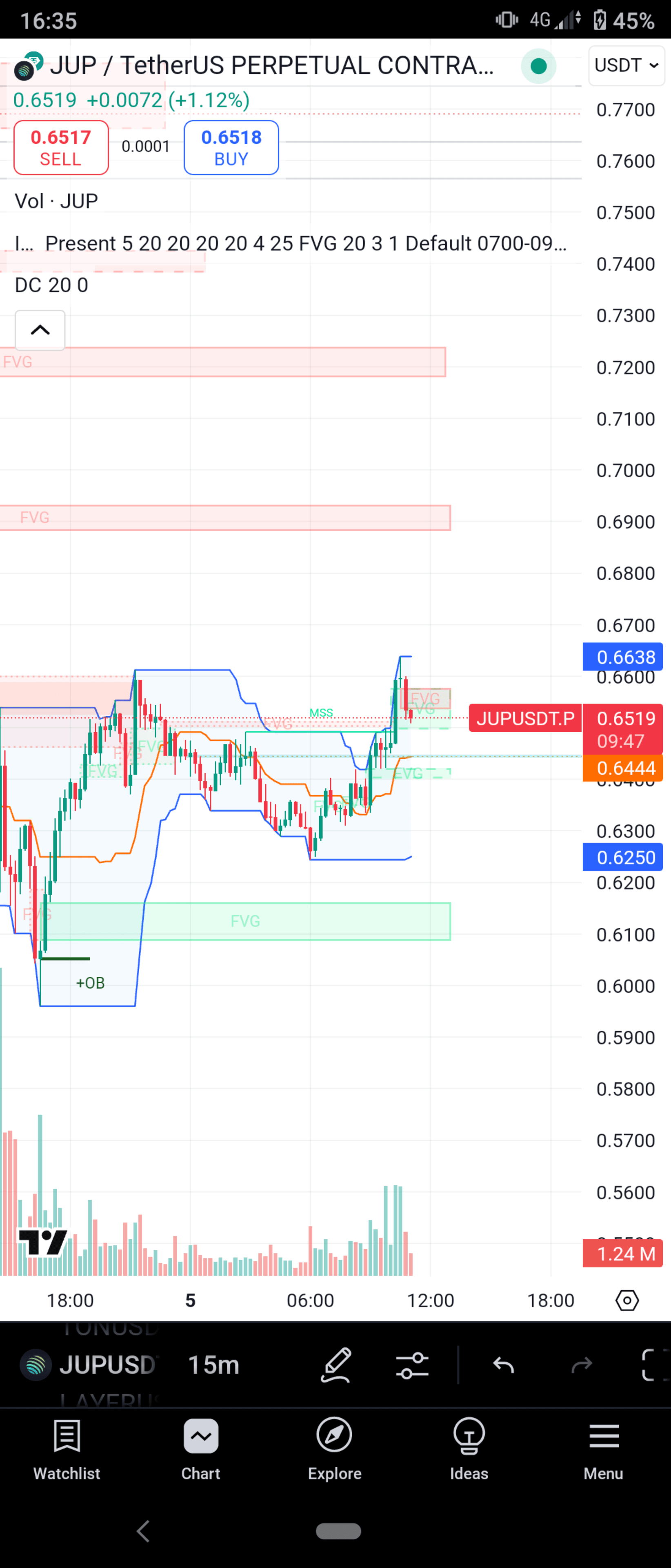 ✅ Zona di supporto Fair Value Gap (FVG): La domanda a $0.6250–$0.6444 si mantiene bene, mostrando forza degli acquirenti.