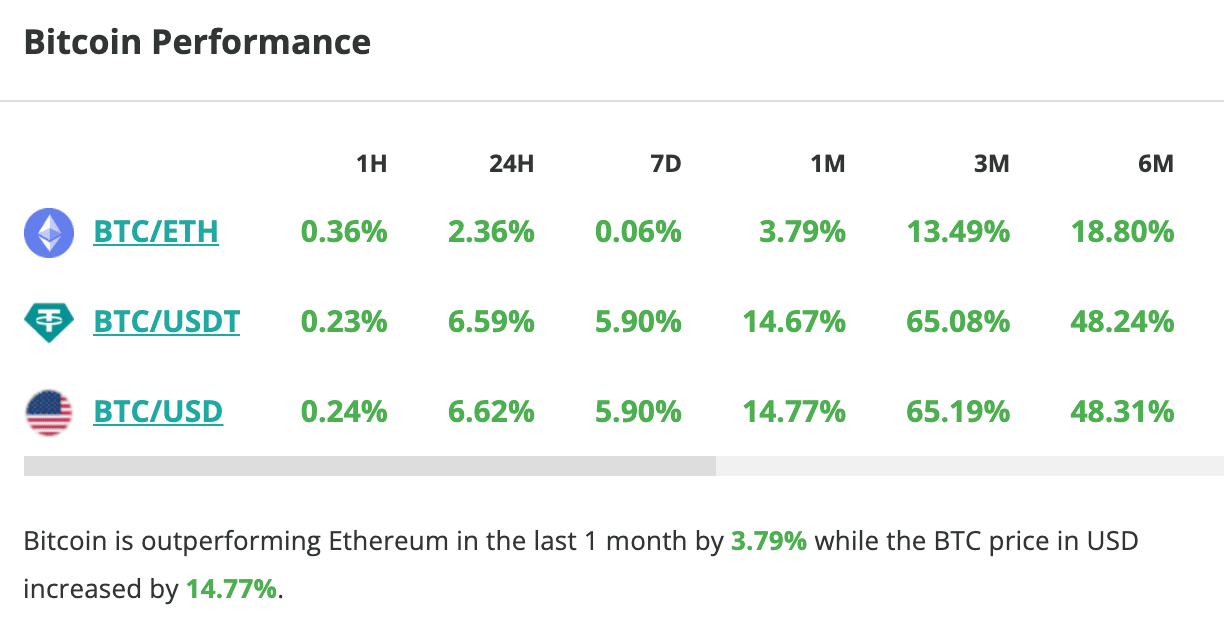 Il prezzo mostra un aumento del 15% in un mese e del 65% in tre mesi. Contro Ethereum, BTC sale del 2,4% in 24 ore e quasi del 4% in un mese. Con l'avvicinarsi della risposta all'ETF spot su Bitcoin, BTC sta riprendendo forza.