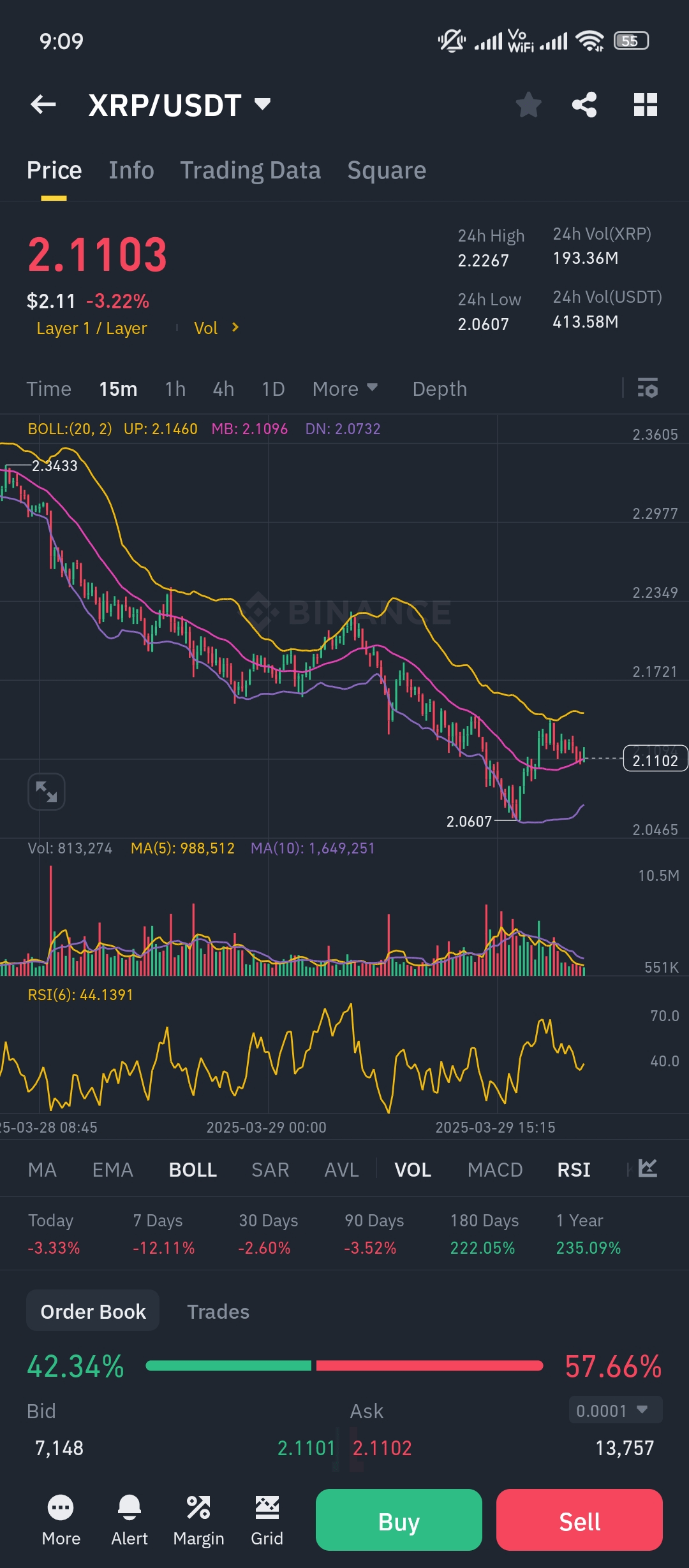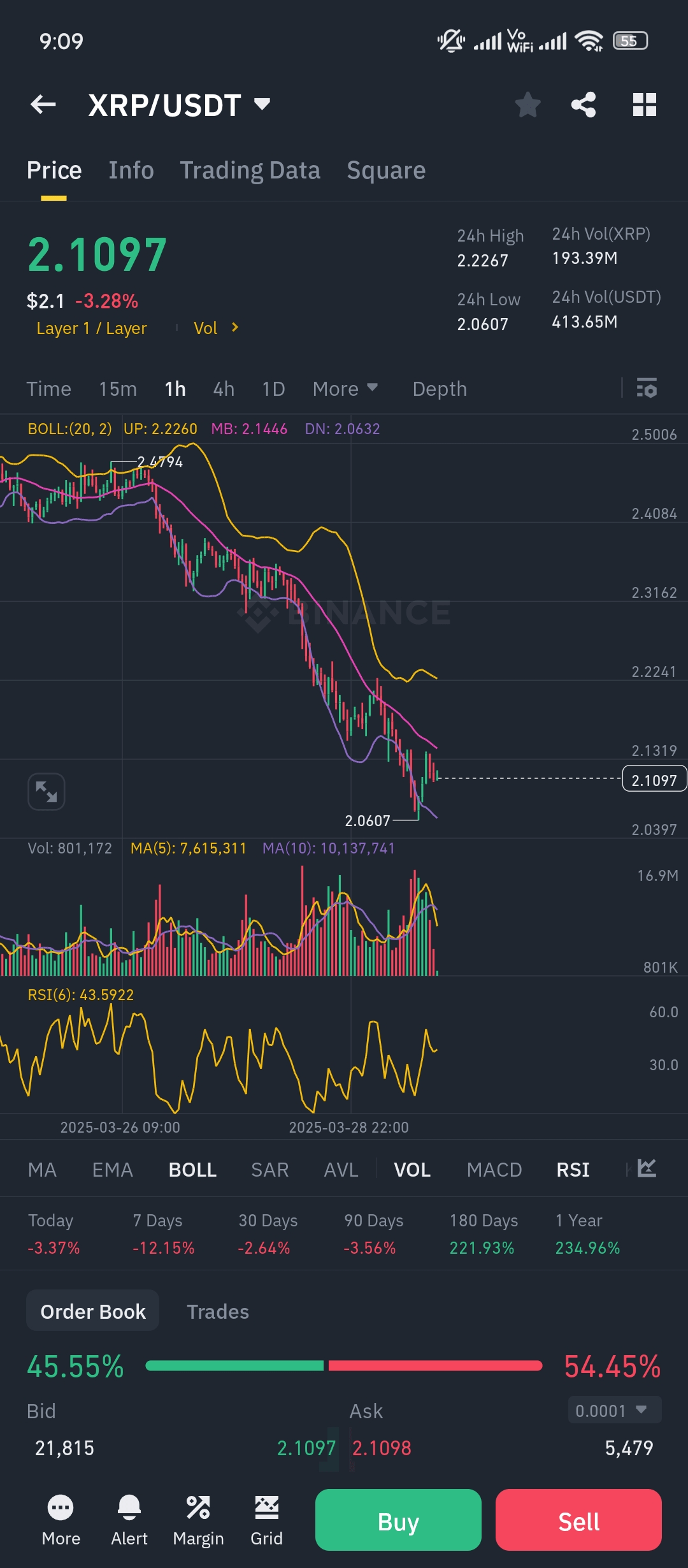 - Prezzo Corrente: **2.1097 USDT** (in calo **-3.28%** rispetto alla chiusura precedente).