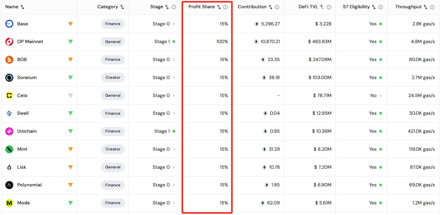 Basato sullo stack OP [Superchain], la più notevole è Base, e come parte di Superchain, Base contribuirà con una parte delle commissioni guadagnate dalle transazioni a Optimism Collective (principalmente per scopi di finanziamento).