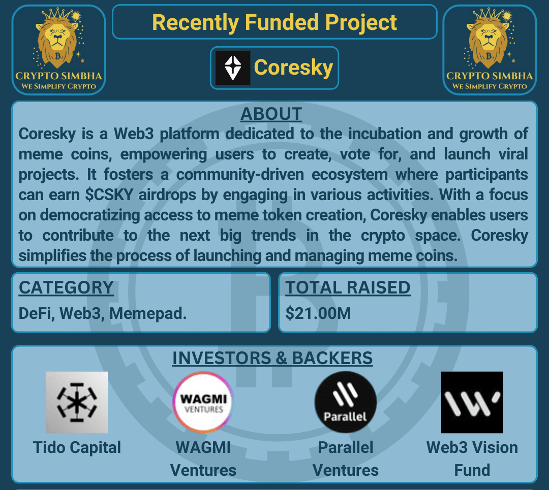 🔹Informazioni: Coresky è una piattaforma Web3 dedicata all'incubazione e alla crescita di meme coin, dando potere agli utenti di creare, votare e lanciare progetti virali. Favorisce un ecosistema guidato dalla comunità in cui i partecipanti possono guadagnare airdrop di $CSKY partecipando a varie attività. Con un focus sulla democratizzazione dell'accesso alla creazione di token meme, Coresky consente agli utenti di contribuire alle prossime grandi tendenze nel settore crypto. Integrando strumenti e risorse innovative, Coresky semplifica il processo di lancio e gestione delle meme coin, rendendolo accessibile a un pubblico più ampio. La sua interfaccia intuitiva e l'infrastruttura robusta garantiscono una partecipazione fluida sia per i creatori che per gli investitori. Coresky enfatizza anche la trasparenza e l'impegno della comunità, costruendo fiducia all'interno del suo ecosistema.🚀🌐
